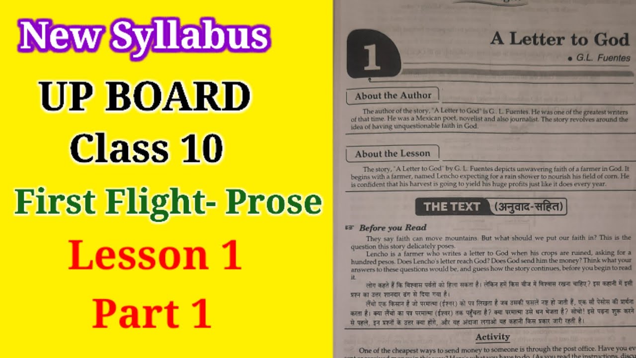 Up Board Class 10 Lesson 1 A Letter To God Part 1 Explanation New Syllabus Youtube